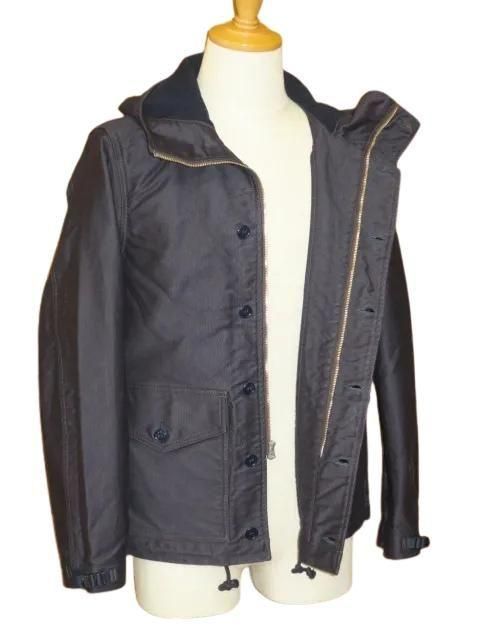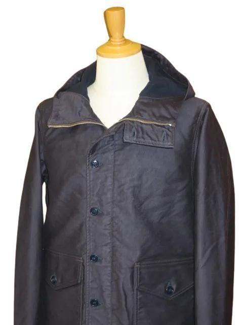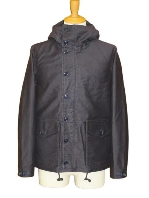 UNION SPECIAL OVERALLS 1940 〜1950s U.S.NAVY STYLE CLOTHING Vintage Style High Density Jungle Cloth アメリカ海軍のデッキワーカーパーカをイメージしたオリジナルデザインです。 フロントはボタンとジッパー仕様です。 裾ハンドウォーマーポケットはフラップ付きで上からも物を入れることができます。 袖口とフードにはハシゴバックルのストラップが付き、サイズ調節できます。 裾はドローコード内蔵で調節できます。 生地は高密度のジャングルクロス(裏起毛あり)を使用しています。 フード裏側とハンドウォーマーポケット裏側にはコットンネルを使用しています。 ボタンは尿素ボタンを使用しています。 ウォッシュ。 ネイビー サイズ: 38.40.42 サイズ目安 (cm) 38 身幅55 肩幅45 着丈70 袖丈64 40 身幅57.5 肩幅47 着丈72 袖丈64 42 身幅60 肩幅49 着丈74 袖丈64.5 誤差はご了承ください