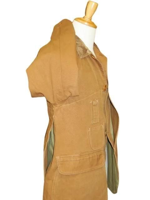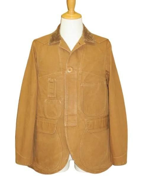 GREAT LAKES GMT.MFG.CO. 1920s HUNTING COAT Vintage Style Original Heavy Cotton Yarn-Dyed Duck 古いハンティングコートをモチーフにしたイエローストーンコートです。 フロントとバックには大型ゲームポケットが付きます。 クラシカルな雰囲気のAラインシルエットで裾のカーブも特徴的です。 縫製は全て手間のかかる本縫い仕様です。 生地は先染めの硫化染料で染め上げたヘヴィコットンダックを使用しています。 ムラ糸を高密度で織り上げたビンテージの雰囲気とハリコシのあるダック生地です。 裏地にはコットンポプリンを使用しています。 襟と袖口裏にはヘヴィコーデュロイを使用しています。 ボタンはグレイトレイクス刻印入りナットボタンを使用しています。 ワンウォッシュ。 バッファローブラウン サイズ: 38.40.42 サイズ目安 (cm) 38 身幅54 肩幅44.5 着丈77 袖丈64.5 40 身幅56.5 肩幅46.5 着丈78 袖丈65 採寸の誤差はご了承ください