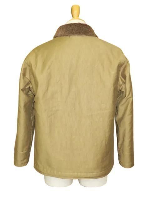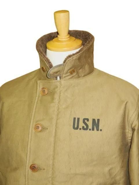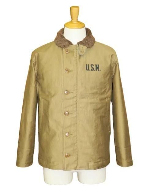 COLIMBO N-1 WW2 MODEL U.S.N. PRINTED アメリカ海軍艦艇クルー向けに生産された代表的なデッキジャケットの初期型をモデルアップ。 大戦末期から急ピッチで大量生産された余剰分がサープラスとして戦後の米国内に出回りモータースポーツに心酔する若者たちに受け入れられた。 ・表地 オリジナルN-1グログラン(コットン100%) ・ライニング アルパカウールパイル ・オリジナルリブ(ウール100%) ・タロンジッパー ・ナットボタン ・その他 コットンツイル(コットン100%) デッドグラスグリーン サイズ: 38.40.42 サイズ目安 (cm) 38 身幅57 肩幅46.5 着丈69 袖丈59 40 身幅59 肩幅48 着丈71 袖丈60 42 身幅61 肩幅49.5 着丈73 袖丈61 誤差はご了承ください