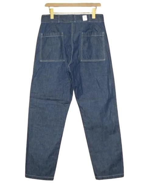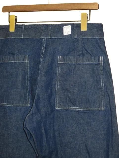 COLIMBO 世界恐慌が本格化した1930年代初頭、アメリカでは対策として大型の公共事業などを中心に雇用を確保し、そのピンチを来たるべき世界大戦時において国家の根幹となる施設を整備した。 本製品はその当時、それらの作業にあたるワーカー達に支給されたパンツのデッドストックを分析して作成した。 シンプルながら過酷な労働に耐える様、考え抜かれたステッチワークが光る。 ウォッシュ。 ・10oz インディゴデニム(ジンバブエコットン) ・オリジナル鉄製黒塗りドーナツボタン 10oz インディゴデニム サイズ: M.L.XL サイズ目安 (cm) M(32) ウエスト82 ワタリ34 股上30 裾幅21 股下80 L(34) ウエスト86 ワタリ36 股上31 裾幅21.5 股下82 誤差はご了承ください