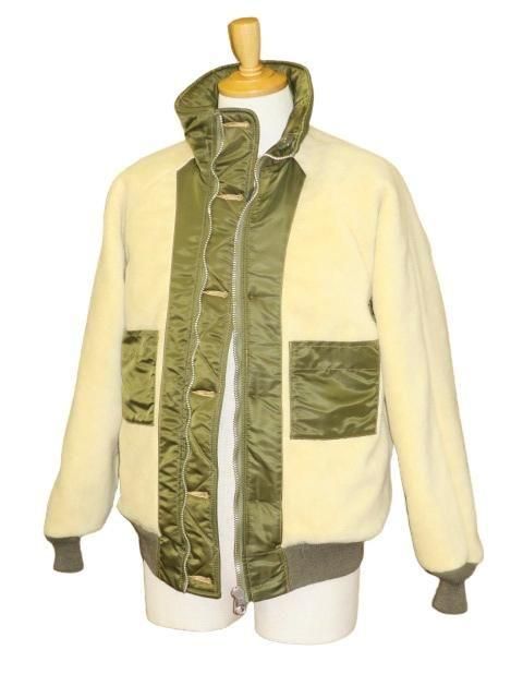 COLD WEATHER JACKET UNION SPECIAL OVERALLS 1950s CIVILIAN MILITARY STYLE CLOTHING Original Nylon 66 Twill 1950年代のUSAF エアクルージャケットをイメージしたデザインです。 ラグランスリーブの肘部分は二重で、左袖にはフラップ付きポケットが付きます。 フロントはジッパーとボタン仕様で遮風性が高いです。 袖口にはウールリブが内蔵されています。 内ポケットが左右に付きます。 表地にオリジナルのナイロン66ツイルを使用しています。 裏地には肉厚のウールパイル(ウール100%)を使用しています。 ハンドポケットにもウールパイルを使用しています。 柔らかくて肌触りが良いです。 フロントジッパーはWALDESジッパーを使用しています。 ボタンは尿素ボタンを使用しています。 カーキオリーブ サイズ: M.L サイズ目安 (cm) M 身幅58 着丈66 裄丈85 L 身幅61 着丈68 裄丈87 誤差はご了承ください