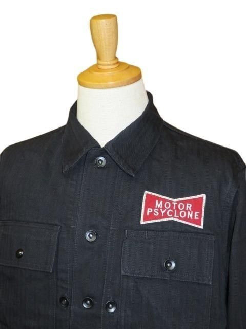 GRUNTS JACKET MOTOR PSYCLONE GARAGE SERIES UNION SPECIAL OVERALLS 1960s〜 STYLE WORK CLOTHING Vintage Style Yarn-Dyed Herringbone Twill 米海兵隊のP-44 HBT ユーティリティジャケットをアレンジしています。 生地は先染めのコットンヘリンボーンツイルを使用しています。 肉厚でハリコシのある生地です。 ボタンは鉄製黒塗りドーナツボタンを使用しています。 右胸と袖口にはスナップボタンを使用しています。 ウォッシュ。 ルードブラック サイズ: 38.40.42 サイズ目安 (cm) 38 身幅57 肩幅44.5 着丈72 袖丈64 40 身幅60 肩幅46.5 着丈73 袖丈64.5 42 身幅63 肩幅48.5 着丈74 袖丈65 誤差はご了承ください