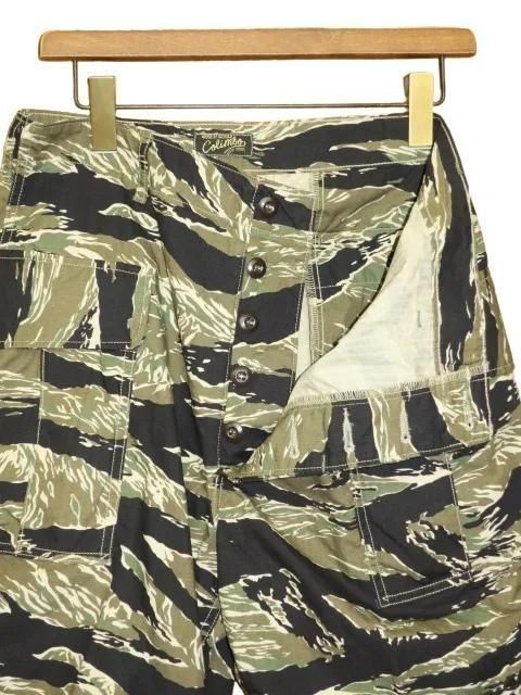 COLIMBO 2025 60年代のファティーグパンツをベースにデイリーに使いやすいショートパンツへとアレンジしました。 特徴的なサイドのカーゴポケット位置を上目にセットづることによりシンプルなシルエットに仕上げています。 薄手のリップストップ生地はTシャツやスニーカーと合わせたリラックスなスタイルからシャツやサンダルで大人のこなれた着こなしまで幅広いシーンで活躍するショートパンツです。 ・Cotton Rip Stop Tiger Stripe コットン100% ・尿素ボタン タイガーストライプ サイズ: M.L.XL サイズ目安 (cm) M ウエスト83 ワタリ34 股上32 裾幅26.5 股下21 L ウエスト86 ワタリ35 股上33 裾幅27.5 股下22 誤差はご了承ください
