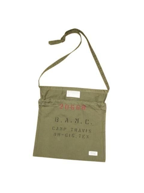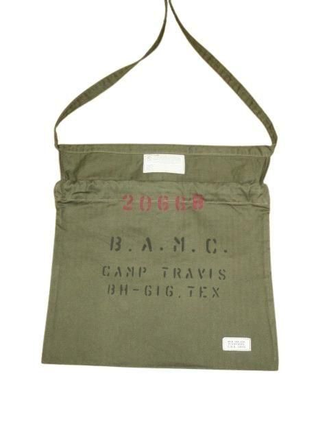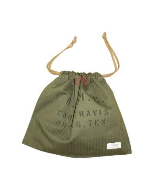 COLIMBO 2025 ショルダーバッグ、エプロンバッグ、巾着として使える便利なバッグです。 生地はベイカーパンツと同じコットンヘリンボーンツイルで丈夫です。 サイズは横約34cm、高さ約29cmで、財布、携帯、600mlペットボトルを入れるのにちょうどいいです。 ・Selvedge Herringbone Twill コットン100% ・Cotton Herringbone Tape コットン100% 1940年代製のヘリンボーン生地で作られたエプロンバッグ。かつては薬品や医療道具を入れるバッグとして使われていた。軍用生地の残反が使われるモノが多いが、素材や縫製仕様などは、当時の家庭で作られていたモノなので無数に存在する。 ブルックアーミーメディカルセンター(BAMC)はテキサス州ヒューストンで450床、総従事者8000名以上という巨大医療機関として知られる最大規模の陸軍病院であり、大戦中は戦地より移送されて来る負傷兵のために敷地内に大規模なバラックを増設して対応した。 オリーブ サイズ目安 横約34cm 全高約36cm(本体高さ約29cm) 誤差はご了承ください