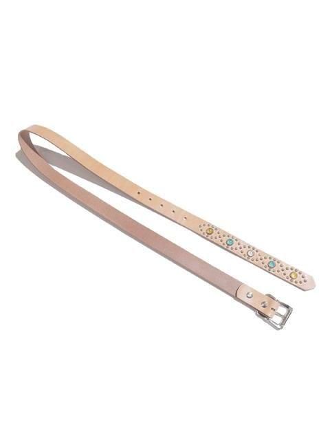 COLIMBO 2025 《 END ONLY*剣先にのみ装飾 》 ・27mm "Cat's eye Pattern" キャッツアイパターン ・真鍮素材を下地としニッケルメッキを施した The Standard Rivet Companyのスタッズと 同社のジュエルスタッズを贅沢に使用した一本。 スタッズを留める際にもThe Standard Rivet Companyの ビンテージマシンを使用することで裏面の二本爪の処理が ハンドクラフトの物とは異なる。 ※専用マシーンでの処理は裏面の美しさはもちろんのこと スタッズが抜け難いなどの強度面にも大きく作用する。 ・ベルト部には厚みが5〜6mmのベンズレザーを Standard Rivet を適切に留めれる最大厚の4mmに加工し使用。 専用箱付き。 【Size Specs】 ※ベルトのピン先から5つ穴の真ん中(3番目)までの長さになります。 バックルとピン先が交わる部分でピンの付け根からではありません。穴は2.5cm間隔です。 30Inch : 83cm 32Inch : 88cm 34Inch : 93cm 36Inch : 98cm ナチュラルタン サイズ: 30.32.34.36 在庫切れのサイズはお取り寄せできます。 製作に約3ヶ月かかります。 詳しくはお問い合わせください。